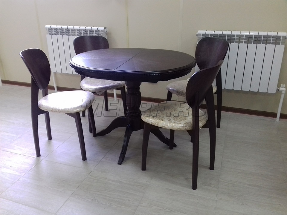 Недорогой комплект стол + 4 стула из массива дерева. Можно использовать в гостиных, кухнях, столовых, а также ресторанах и кафе.